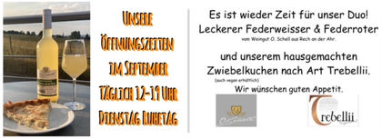 Federweisser & Ferderroter zusammen mit unserem hausgemachten Zwiebelkuchen nach Art Trebellii